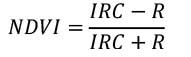 Donde, NDVI es el índice de vegetación de diferencia normalizada, el IRC es la banda del infrarrojo cercano y el R es la banda roja.