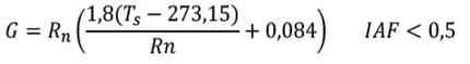 Para la obtención del flujo de calor del suelo (G) se aplicaron la ecuación 4 y 5, que dependen del IAF (Suwanlertcharoen et al., 2023).