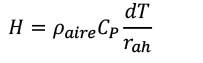 El flujo de calor sensible del aire (H) se calcula con el uso de una función aerodinámica (ecuación 6). Se inició con el cálculo de la rugosidad de la superficie, la velocidad del viento y los rangos de temperatura de la superficie. Donde rah es la resistencia aerodinámica (s/m). El valor de H se calcula a partir de la rugosidad de la superficie, la velocidad del viento y los rangos de temperatura.