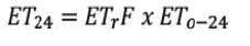 Donde, ET24 es la ET diaria (mm/d) y el ETo-24 es la sumatoria de la ET de cada hora de todo el día.