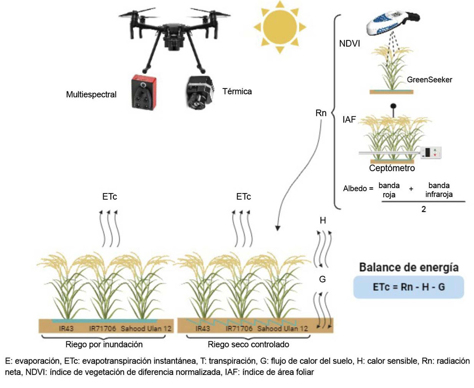 Palabras clave: arrozales, balance de energía, drone, riego con secas controladas.