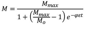 El modelo basado en parámetros fotosintéticos se define en la ecuación 1. Donde M es la biomasa de la planta; Mmax es la biomasa que el cultivo puede alcanzar en un ambiente dado; M0 es la biomasa mínima de las plantas en el campo; φ es un parámetro de ajuste fotosintético de la planta (que se define en la ecuación 2); y ε es el parámetro de eficiencia de asimilación fotosintética.