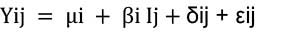 Donde: Yij = promedio del genotipo i en el ambiente j; µi = media del genotipo i en todos los ambientes; βi = coeficiente de regresión que mide la respuesta del genotipo i a la variación ambiental; Ιj = índice ambiental, obtenido como la diferencia entre la media de todos los genotipos en el ambiente j menos la media general; δij = desvío de la regresión del genotipo i en el ambiente j; εij = la desviación de la regresión de la variedad y el ambiente.