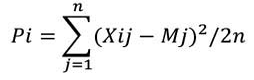 Donde: Pi = índice de superioridad de i-ésimo cultivar; Xij = productividad de i-ésimo cultivar evaluado en la j-ésima localidad; Mj = respuesta máxima obtenida entre todos los cultivares en la j-ésima localidad; n = número de localidades.