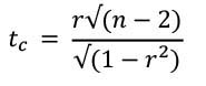 La t calculada (tc) se comparó con una t tabla (tt) al nivel de significancia seleccionado de 0,05 y 0,01 con n = 2 grados de libertad. La regla de decisión fue la siguiente: si tc ≥ tt, entonces el valor de r (correlación) es estadísticamente diferente de cero.