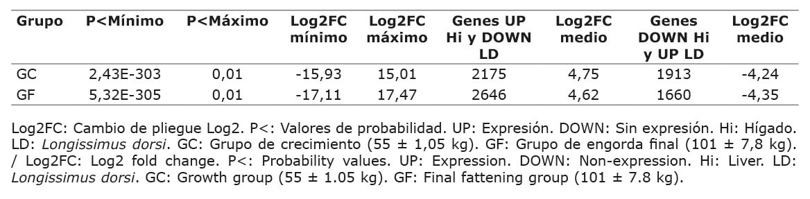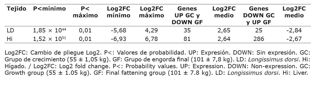 Análisis de transcriptoma en Longissimus dorsi e hígado