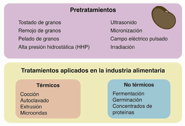 La categoría de tratamientos térmicos incluye todos los métodos que necesitan de una fuente de calor para llevarse a cabo. En el caso del frijol, los tratamientos términos utilizados con mayor frecuencia son cocción, autoclavado, extrusión y uso de microondas.