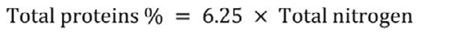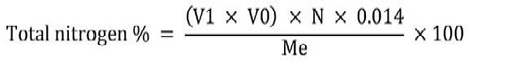 Crude protein content was determined using the Kjeldahl method described by Jean Constant et al. (2020). This method involves mineralization, distillation, and sulfuric acid titration phases. The total protein content is expressed as a percentage by mass using specific equations (equations 1 and 2).
