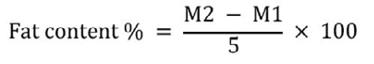 After complete evaporation, the flask was reweighed (M2). The fat content was calculated using the equation 3.