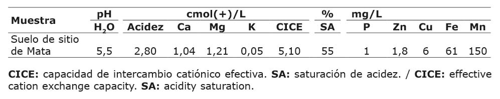 El suelo utilizado en este ensayo se obtuvo de una finca ganadera ubicada en la comunidad de Sitio de Mata, en el cantón de Turrialba, Cartago, Costa Rica. Sus características químicas se presentan en el Cuadro 2.