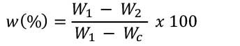 (1)Donde W es el contenido de humedad en porcentaje; W1 es la masa del recipiente más la muestra húmeda (g); W2 es la masa del recipiente más la muestra seca (g), y Wces la masa del recipiente (g).