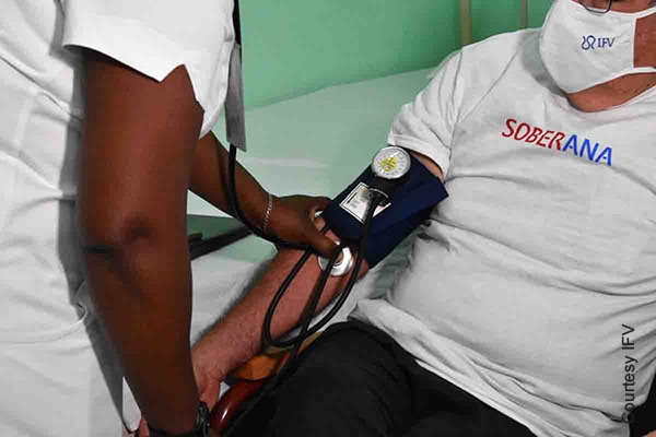 Dagmar García: The inclusion criteria and protocols for the older cohort are the same as those aged 19 to 59. However, to be eligible, those volunteers with chronic conditions had to demonstrate that they were clinically controlled. In addition to the periodic exams of every participant that I described, everyone also received a card that identifies them as a participant in the SOBERANA 01 clinical trial. And our entire health system is on alert. Should a volunteer become ill or have any health issue during the trial, including the two-month follow up period, they show this ID card to anyone at a health institution. This allows procedures to be implemented that are designed specifically for participants in this clinical trial. Furthermore, should a participant receive a positive RT-PCR test during the clinical trial, our national protocols for COVID-19 treatment are immediately activated and that person is removed from the trial.