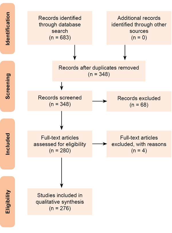 We retrieved articles indexed in Medline/PubMed, SciELO, Bioline International, and Google Scholar using the following keywords/phrases: DFU, limb AND amputation, DFU AND infection, DFU AND biofilm, immune system AND diabetic patient, microorganism AND immune system. A total of 683 articles were retrieved and exported a reference manager. Duplicate articles were removed (Figure 1). Our final selection included 280 research and review articles. Titles, objectives and abstracts were carefully screened and reviewed. The search was limited to the English language without date restrictions. All compiled information was structured under four principal headings: 1) a general overview of the normal healing response in a healthy organism; 2) an overview of the cellular and molecular foundations of the impaired healing process in the diabetic population; 3) diabetic dysimmunity; and 4) conceptual definition and pathogenic implications of diabetic foot infection (DFI) in its interaction with the host.