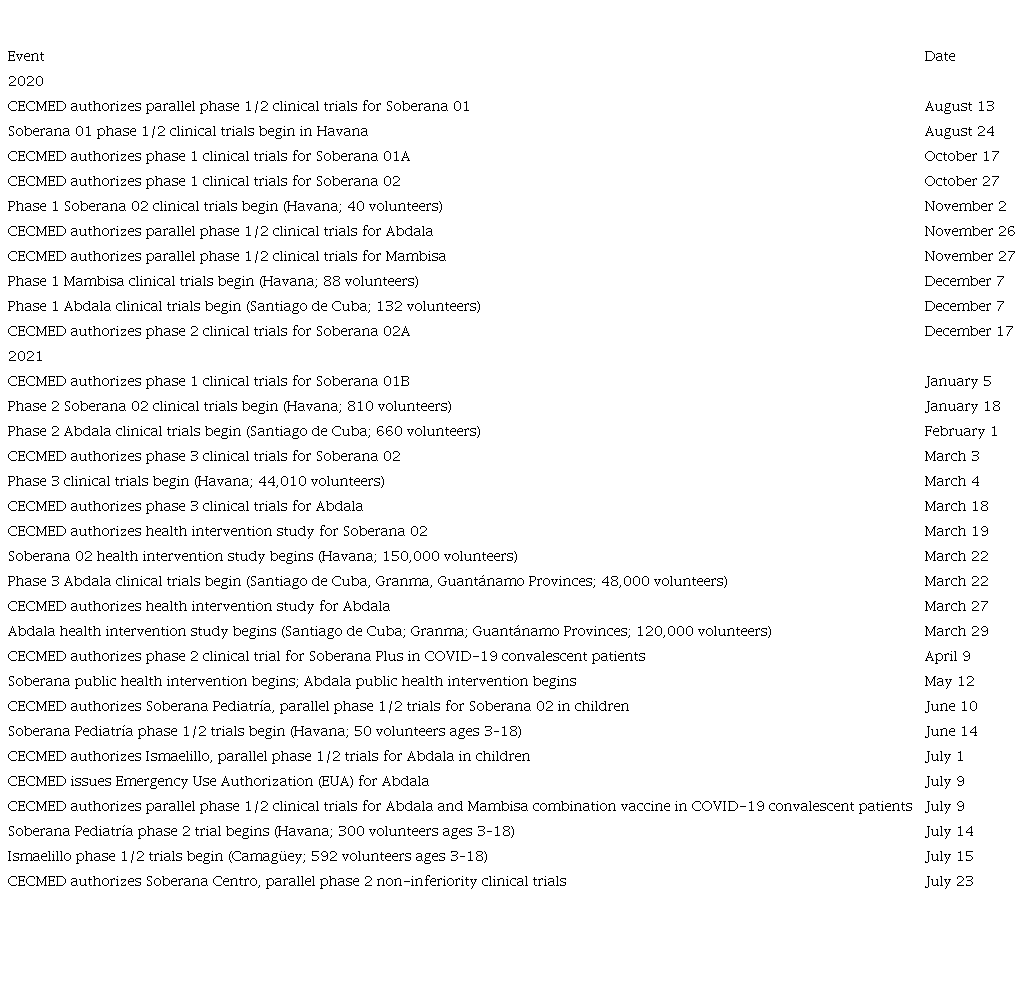 CECMED approved parallel phase 1/2 trials, now underway, at the Juan Manuel Márquez Pediatric Teaching Hospital in Havana. This hospital has extensive experience conducting clinical trials, including the requisite physical infrastructure, trained personnel and specialists, and adherence to clinical best practices. The first group of 25 youngsters, aged 12–18 years, received their first dose several weeks ago and were monitored for adverse effects for one week after vaccination. The safety report submitted to CECMED after this 7-day observation period indicated local injection-site reactions as the only adverse effects. With this data confirming the vaccine’s safety (already demonstrated in phase 1, 2 and partial 3 clinical trials in adults), the second group of 25 children, 3–11 years old, was authorized to receive their vaccinations. To date, this clinical trial has proceeded smoothly. The other vaccine, Abdala, will also enter pediatric clinical trials this year. We are vaccinating our adult population quickly, but they can be carriers of SARS-CoV-2 and infect their children at home, which is why we are emphatic about pediatric trials and vaccination.