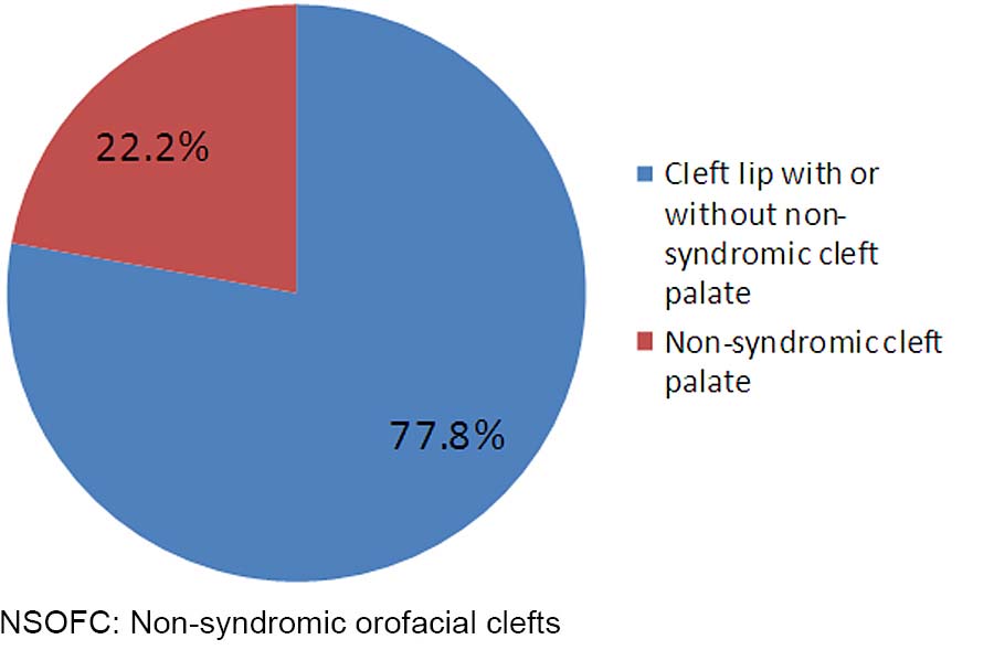 The most serious morphological abnormality among NSOFCs is bilateral CL and total CP (10% of cases) and the most frequent is unilateral CL with total CP (40%). Syndromic abnormalities have dysmorphic patterns which are associated with other congenital abnormalities; more than 300 different syndromes associated with NSOFCs have been identified. However, most cases present as non-syndromic abnormalities (70%).[7–10]