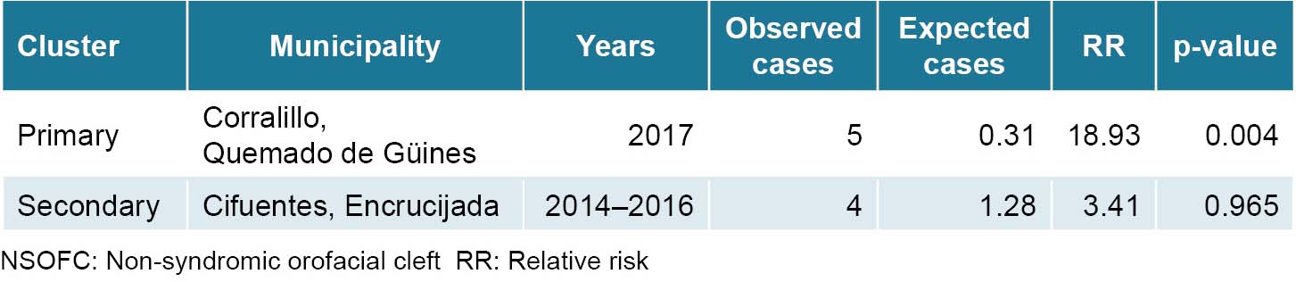 CONCLUSIONS Spatiotemporal analysis of non-syndromic orofacial clefts in Villa Clara Province, Cuba, identified two spatiotemporal clusters, constituting an opportunity to better understand the etiology of orofacial clefts.