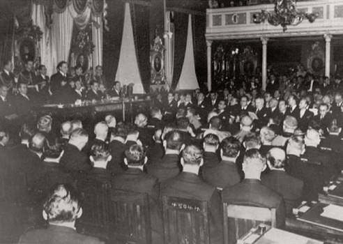 La toma de poder de Rafael Ángel Calderón Guardia, el 8 de mayo de 1940, se llevó a cabo en el Congreso. Si bien el recinto legislativo estuvo completamente abarrotado de personas, se debe anotar que, de la misma manera que en ocasiones anteriores, son principalmente miembros del Gobierno, militares, representantes del alto clero, delegaciones extranjeras y la prensa los que pueden acudir al recinto legislativo para presenciar el acto de juramentación (ver Figura 1). Por lo tanto, esta actividad continuaba siendo dirigida hacia la clase política y dominante del país, sirviendo entonces como un espacio de diferenciación entre estos y el resto del pueblo costarricense. No obstante, igual que en ceremonias de toma de poder anteriores, también era importante para las autoridades incluir a la población en la participación de actividades masivas, con las cuales podían afianzar su legitimidad, a la vez que ser utilizadas como un espacio para desplegar una serie de símbolos y ritos que le permitieran a la población identificar dónde se encuentra el poder.