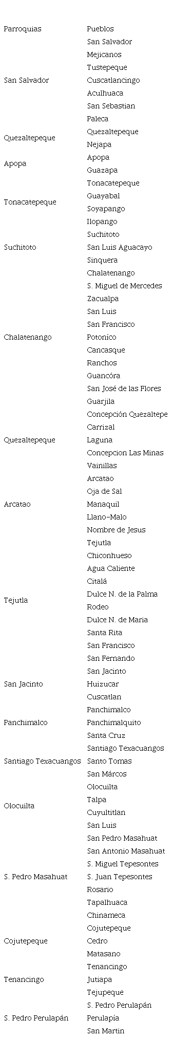 Hacia 1822, la Diócesis de Comayagua (Honduras) estaba con sede vacante desde 1820. Tres años después (1825) la Diócesis de León (Nicaragua), de quien dependía eclesiásticamente el Estado de Costa Rica, también quedaría con sede vacante, situación que se resolvería con los años (Costa Rica obtendría su propia diócesis hasta el 28 de febrero de 1850). El Estado del Salvador, como ya se advirtió, estaba sujeto a Guatemala. Las vicarías pertenecientes a la Iglesia Metropolitana estaban distribuidas de la siguiente manera: por el Estado de Guatemala, además de los curatos de la capital y de las doctrinas de Santo Domingo, San Francisco y Nuestra Señora de la Merced, las siguientes vicarías: (1) Antigua Guatemala, (2) Sacatepéquez, (3) Chimaltenango, (4) Chiquimula de la Sierra, (5) San Agustín de la Real Corona, (6) Mita, (7) Escuintla, (8) Guazacapán, (9) Suchitepéquez, (10) Totonicapán, (11) Atitlán, (12) Huehuetenango; por el Estado del Salvador las siguientes vicarías: (1) San Salvador, (2) San Miguel, (3) San Vicente, (4) Sonsonate, (5) Santa Ana Grande (Juarros, 1981, pp.58-62). Estos son los territorios eclesiásticos que reclamaría el Estado del Salvador para conformar su propia diócesis. Hacia 1842 hacían un total de 54 parroquias.3