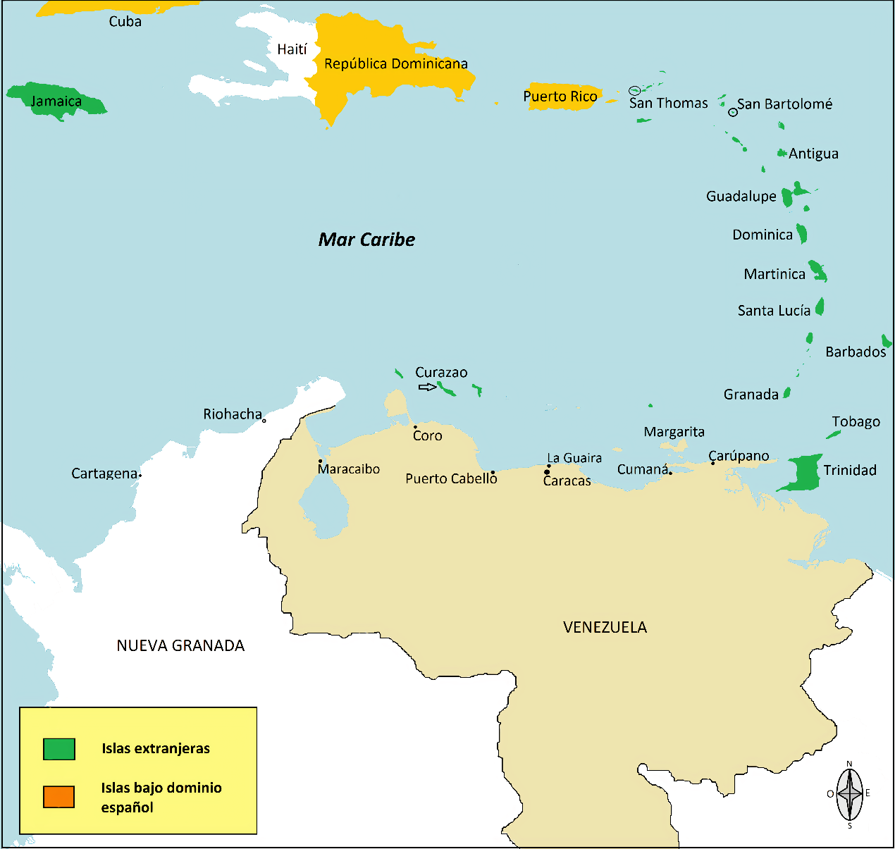 Durante las primeras décadas del siglo XIX, cuando emergieron las primeras manifestaciones revolucionarias en Costa Firme, el gobierno español asentado en Venezuela mantenía relaciones activas con las Colonias extranjeras, en especial con Curazao, Trinidad y San Thomas.