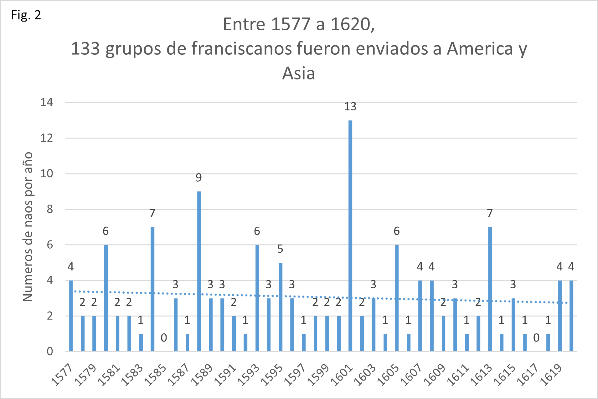 Figura 2. Entre 1577 a 1620, 133 grupos de franciscanos fueron enviados a America y Asia.