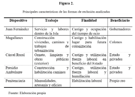 Esta noción de la retribución mediante el usufructo de la fuerza laboral del reo, no solo será característica de la colonia magallánica, sino también de todas las cárceles rurales que se disponen en el territorio durante el siglo XIX, (Rancagua, Talca, Curicó, Linares, Rengo y Talcahuano entre otras), donde los reclusos realizarán labores productivas tanto al interior de los recintos, como en su exterior, para empresarios y el propio Estado. Como evidencia Marcos Fernández (1998) en relación con la cárcel de Rancagua: