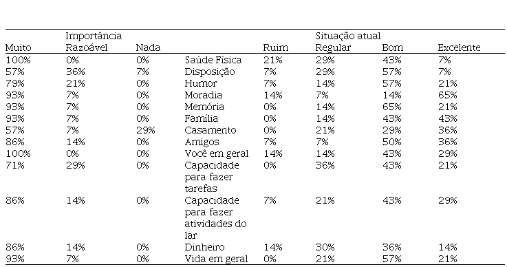 Por meio da QoL/D, avalia-se o quanto algumas cuidadores considerou todas as categorias propostas com áreas da vida dos cuidadores são avaliadas como importantes grande grau de importância em suas vidas. A categoria e o quanto estas encontram-se afetadas. A maioria dos avaliada como menos importante foi “casamento”.