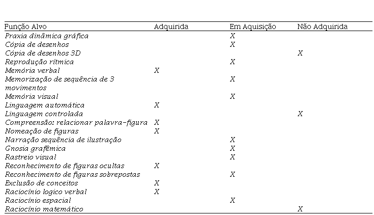 O rebaixamento supracitado não se mostra oriundo de alterações perceptivas, visto que em tarefas de reconhecimento de figuras ocultas e sobrepostas, a discriminação visual esteve preservada.