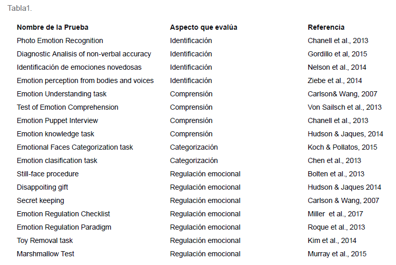 Teniendo en cuenta los aportes descriptos, se puede observar que existen diversas perspectivas para abordar el estudio de las emociones. Estas incluyen, la identificación, mediante la evaluación de la habilidad del niño para reconocer diferentes emociones; la comprensión, estimando la capacidad de entendimiento de las mismas; la categorización, implicada en la destreza para diferenciar y mencionar emociones; y la regulación emocional, relacionada con demandas cognitivas y emocionales para la adecuada manifestación de emociones.
