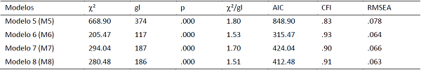 Para analizar el efecto de ESE sobre las FE, las CL, y las CM se empleó MANOVA. Para analizar la relación entre las variables se empleó correlaciones de Pearson. Finalmente, para poner a prueba diferentes modelos se empleó Modelo de Ecuaciones Estructurales (SEM) mediante el programa AMOS Graphics 16.0 (Arbuckle, 2007). El nivel de bondad de ajuste de los modelos se estimó utilizando la prueba c y los índices de ajuste: CFI (Comparative Fit Index) y AIC. Los valores de CFI pueden oscilar entre 0 y 1, siendo aquellos superiores a 0,90 indicadores de un ajuste aceptable (Hu & Bentler, 1995, 1999). Además, se calculó el error cuadrático medio de aproximación (RMSEA) para cada modelo. Este índice es considerado aceptable cuando sus valores son inferiores a 0,08.