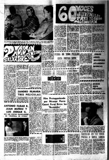 “Film protagonizado por Nicanor Parra causó furor entre los ‘Beatnicks'”. La Nación (Chile), 7 de agosto de 1968. Impreso.