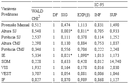 Os resultados para cada variável preditiva sobre o índice SJFT são apresentados na Tabela 2.