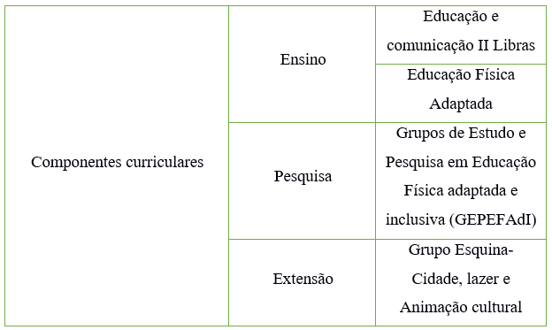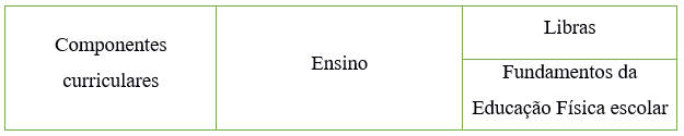 Situadas no eixo de Ensino, as disciplinas de “Educação Física adaptada” e “Educação Comunicação II libras” revelaram sua aderência ao conceito restrito.