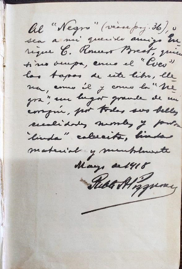 Pizzurno plasma este vínculo con una dedicatoria en las primeras páginas de este ejemplar, como lo atestigua la Figura 3.