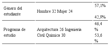 Se seleccionaron mediante muestreo no probabilístico 56 estudiantes y en la Tabla 1 se pueden apreciar la composición por género de los participantes del estudio.