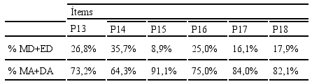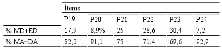A continuación, en la tabla 4, se presentan los ítems que forman parte de la dimensión “Aprendizaje en el aula” que se refieren a aspectos tales como el rol del estudiante, docente, proceso de retroalimentación, entre otros.