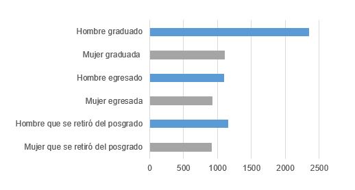 En este sentido, existe una mayor probabilidad de que las mujeres logren graduarse del posgrado, en esta línea, de las 61 mujeres encuestadas 21 obtuvo el título (34,4%); mientras que 8 de los 35 hombres encuestados alcanzó dicho objetivo (22,9%).