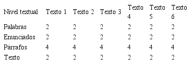 En lo que respecta a los niveles textuales, estos fueron definidos antes de la elaboración de los ítems con el objetivo de que sirvieran de base para la elaboración de los ítems. En la Tabla 2 se presentan las respectivas definiciones.