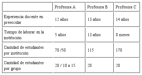 Por un lado, las profesoras entrevistadas cuentan con más de 10 años de laborar como docentes de inglés en el área de preescolar, todas ostentan el grado de Licenciatura en distintas especialidades pero el Bachillerato en Educación Preescolar Bilingüe, o en Educación preescolar con Concentración en Inglés. La Tabla 1 presenta los datos más relevantes en cuanto a la descripción de las docentes; la Profesora A corresponde a la descripción de la docente con dos instituciones a cargo, por lo cual, en su caso, aparecen dos datos diferentes, cada uno corresponde a una institución distinta.
