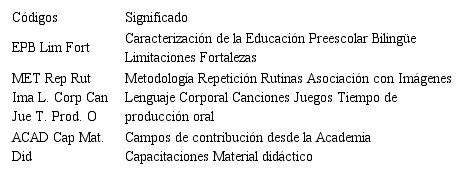 Para una mejor visualización de los temas presentados, la Tabla 4 resume los códigos empleados en el análisis para identificarlos: