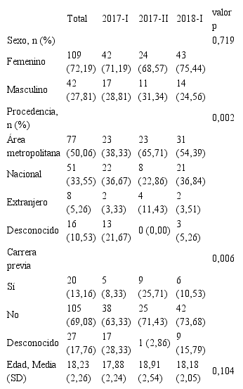 Se tuvo en cuenta todo el estudiantado que se admitió y matriculó en el pregrado de Odontología, en las dos cohortes del año 2017 (ingreso en enero y junio) y la primera cohorte del año 2018 (ingreso en enero de 2018), independientemente de su historial académico, es decir, si tenían o no carrera previa.