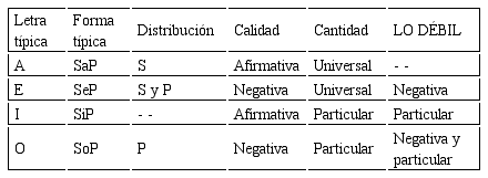 R3. La conclusión se construye con las características débiles de las premisas, entendiéndose como débil a la característica particular o negativa. Para reconocer lo débil, vea la Tabla 1.