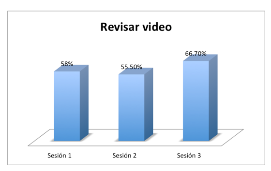 Para la primera sesión, el 58% del alumnado (42), en la segunda el 55.5% (40) y en la tercera el 66.7% (48). De la primera a la tercera sesión hubo un incremento del 8.7% en relación con el compromiso del alumnado, al inicio, solo lo atendieron 42 estudiantes y en la tercera sesión fueron 48, lo que confirma que el empleo del video como estrategia didáctica despertó el interés, además de que es un recurso creado por la docente del grupo, que se adapta a las necesidades y características del grupo, el cual pueden repetir cuantas veces requieran y les permite profundizar en la comprensión del tema.