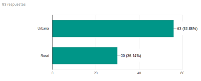 Según el Gráfico 2, la concentración de la población encuestada labora en instituciones educativas estatales, autónomas, no gubernamentales y otras en el Valle Central. Se observa que la mayoría de las personas profesionales en Orientación trabajan en la zona urbana del país, con un total del 63,86% de las personas participantes. En menor porcentaje, pero no menos significativo, se tiene la zona rural, debido a que el 36,14% de las personas consultadas afirman trabajar en esta zona.