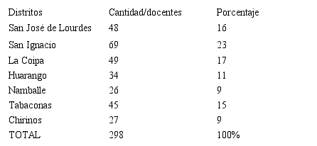 Muestra. La muestra estuvo representada por una parte de la población de todas las personas directoras de los distritos de la provincia de San Ignacio. Tomando como referencia a Hernández, Fernández y Batista (2014), quienes precisan que la muestra es parte de la población y representa a sus características principales.