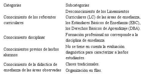 Al respecto, las y los profesores focalizados manifestaron que la formación profesional obstaculizaba en gran medida los procesos de aprendizaje significativo de las y los estudiantes porque su conocimiento estaba ligado a los procesos de enseñanza de la básica primaria, mas no a una disciplina en particular.