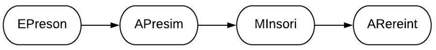 En la Figura 1 se observa un flujo discursivo en donde están involucradas la persona maestra, alumna expositora y el resto del alumnado. El proceso inició cuando la expositora hizo una pregunta para sondear al alumnado, que respondió con una pregunta simple (EPreson→APresim). Seguido de esto, la persona docente instruyó para orientales, así abrió espacio para que el alumnado respondiera después de una reinterpretación para que encontraran la respuesta con sus propios conocimientos reconstruidos (MInsori→ARereint).
