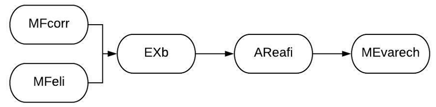 En la figura 2, se observa que cuando el o la docente retroalimentó por medio de la corrección, la persona expositora respondió con un comentario monosilábico (MFcorr→EXb), el cual ocurría cuando la o el docente realizó una obtención de información para retroalimentar (MFeli→EXb). Seguido de esto, la respuesta del alumnado afirmó el conocimiento de su propio saber (EXb→AReafi), y, finalmente, la persona docente evaluó dicho conocimiento al rechazarlo(AReafi→MEvarech).
