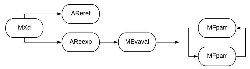 En la figura 3, se observa que cuando una secuencia es iniciada por la persona docente que asigna una participación, el alumnado responde reflexionando (MXd→AReref) o explicando (MXd→AReexp); el que el alumnado explicara su respuesta daba como consecuencia que la persona docente la validara (MXd→AReexp→MEvaval). No obstante, no solo evaluaba dicha respuesta, sino que además retroalimentó parafraseando la respuesta del alumnado (MFparr), un evento que se repite, donde la persona docente hacía uso constante de la información contenida en la explicación del alumnado expositor, y del alumnado anterior, esto para fortalecer y ahondar en el tema principal de la clase.