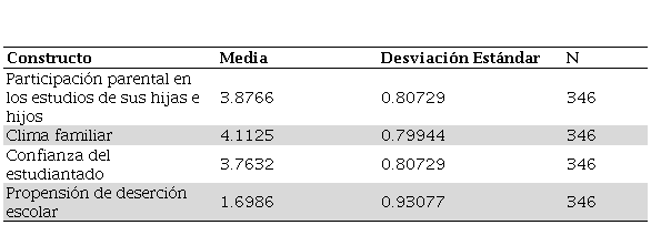 Una vez obtenidos los promedios de las variables para conformar los constructos, se procedió con los resultados estadísticos descriptivos.