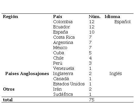 Para lograr el propósito de este documento, se revisaron 75 investigaciones, comprendidas entre los años 2005 y 2020, llevadas a cabo, principalmente, en Latinoamérica, Norteamérica y Europa, con algunas situadas en países africanos y asiáticos. Siete de estas publicaciones están escritas en inglés y el resto en español. Estos documentos abordan el fenómeno desde diversos enfoques, con una amplia variedad de diseños metodológicos, técnicas e instrumentos. El hecho de revisar indagaciones de diferentes partes del mundo, permite identificar las diversas formas en las que se abordan cuestiones relacionadas con la enseñanza y aprendizaje del idioma de acuerdo al contexto. Por ejemplo, el documento publicado en Sudáfrica explora el análisis del currículo de esta lengua en un país que en su momento fue colonia de Reino Unido, cuyo idioma oficial es el inglés a pesar de tener también cuatro lenguas adicionales; lo cual tiene implicaciones diferentes a las investigaciones que muestran el panorama de Latinoamérica, donde este idioma se considera una lengua extranjera. Esta información se resume en la Tabla 1, la cual se presenta a continuación.